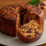 Bolo de frutas saudável feito com aveia, canela, banana e maçã. Perfeito para um lanche nutritivo e saboroso sem culpa!