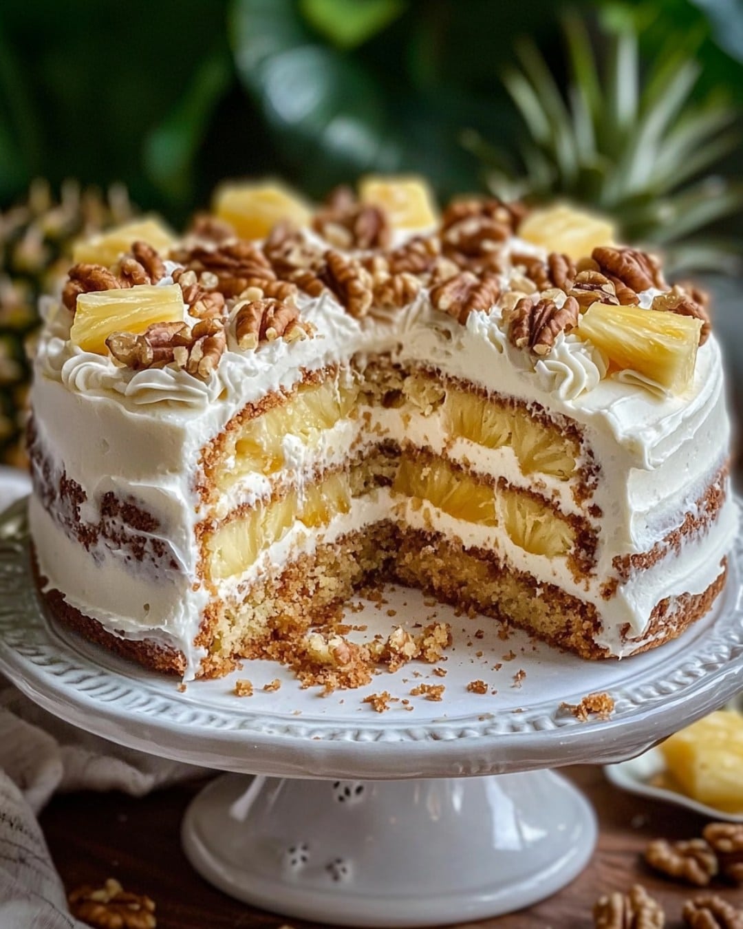 Já imaginou um bolo que combina o frescor do abacaxi com o sabor aconchegante das nozes em uma massa fofinha e um recheio cremoso?