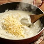 Queijo emperrado: Retire do fogo antes de adicionar queijo e mexa delicadamente. Queijo em fogo alto pode “embolar”.